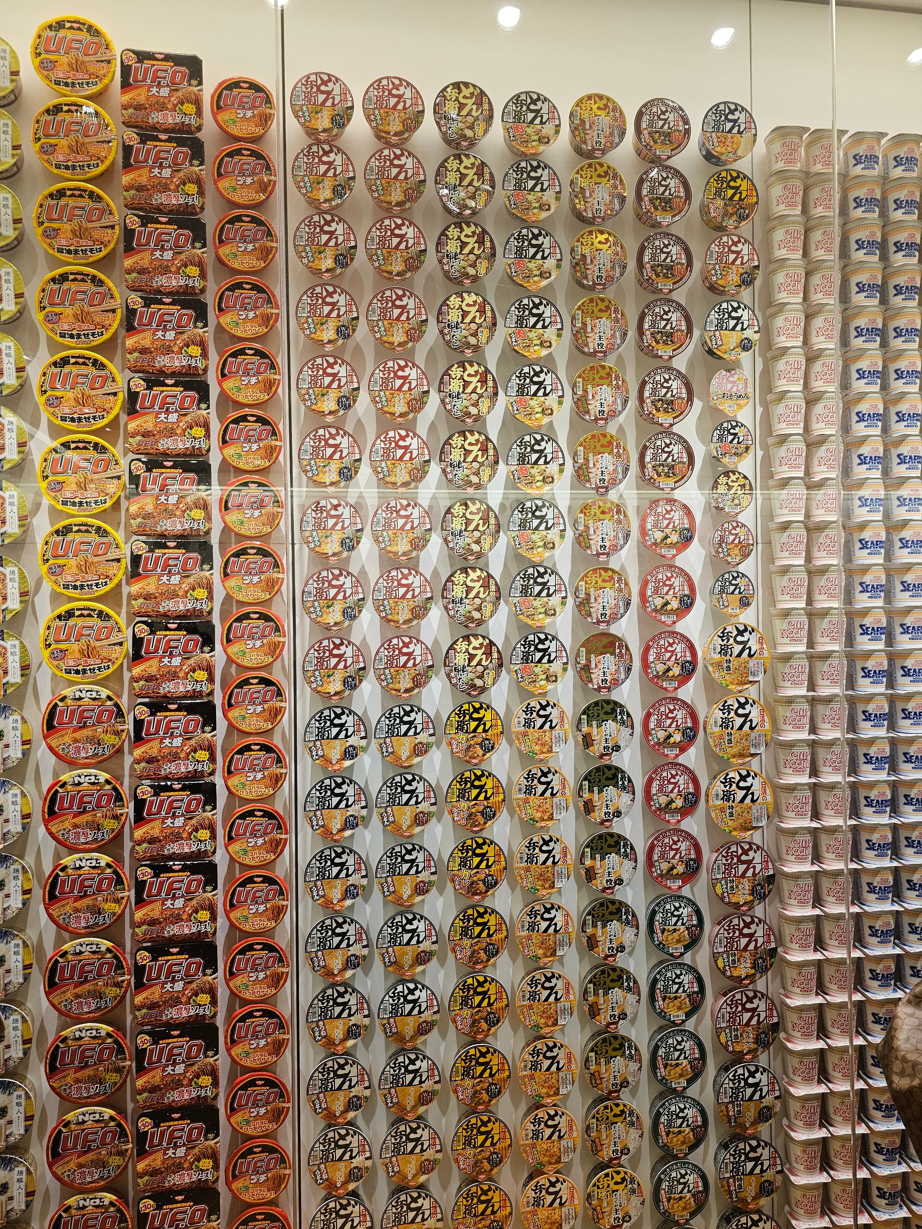 이 곳은 닛신 라면에서 운영하고 있는 컵누들 박물관인데요, 입장하는 순간 벽면에 빼곡하게 붙어있는 컵라면들이 굉장합니다.